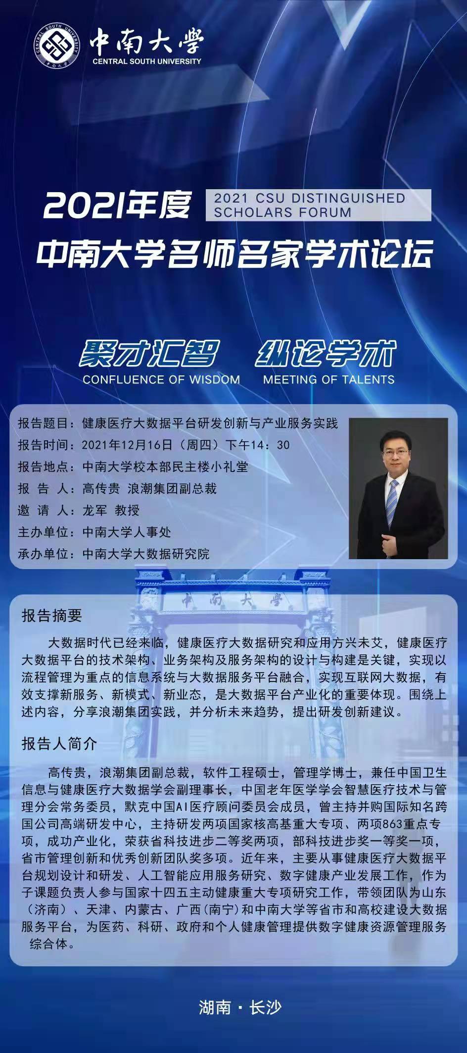 BET体育365投注官网名师名家学术论坛-健康医疗大数据平台研发创新与产业服务实践
